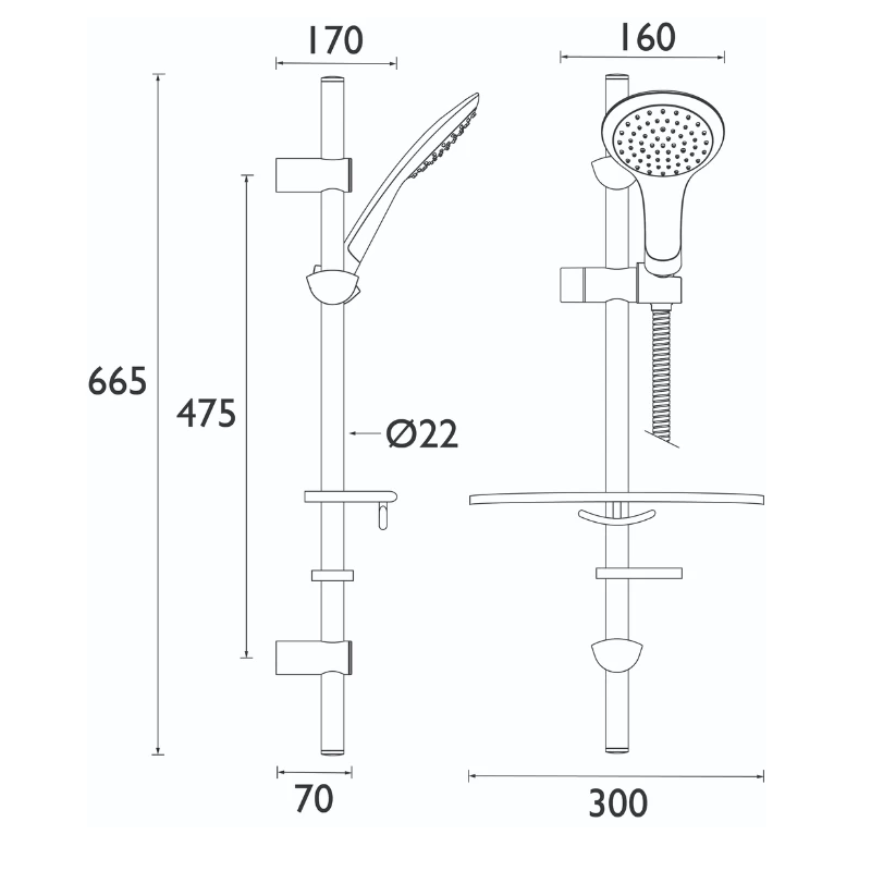 Bristan Commercial Single Function Extended Slide Bar Shower Kit – Chrome.