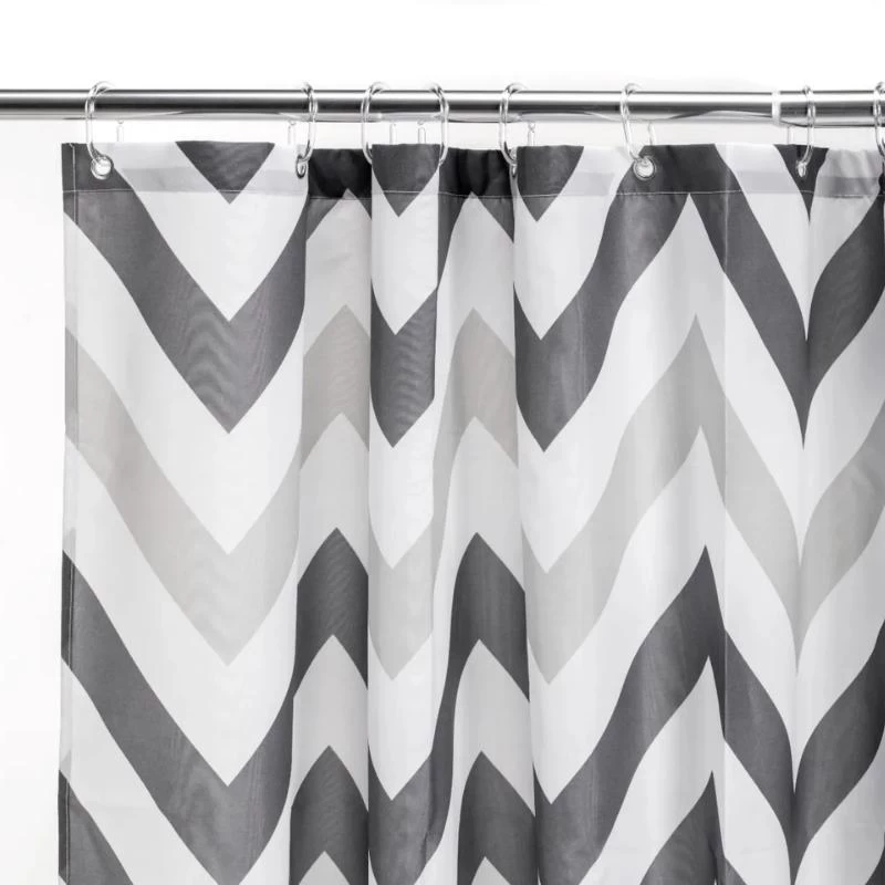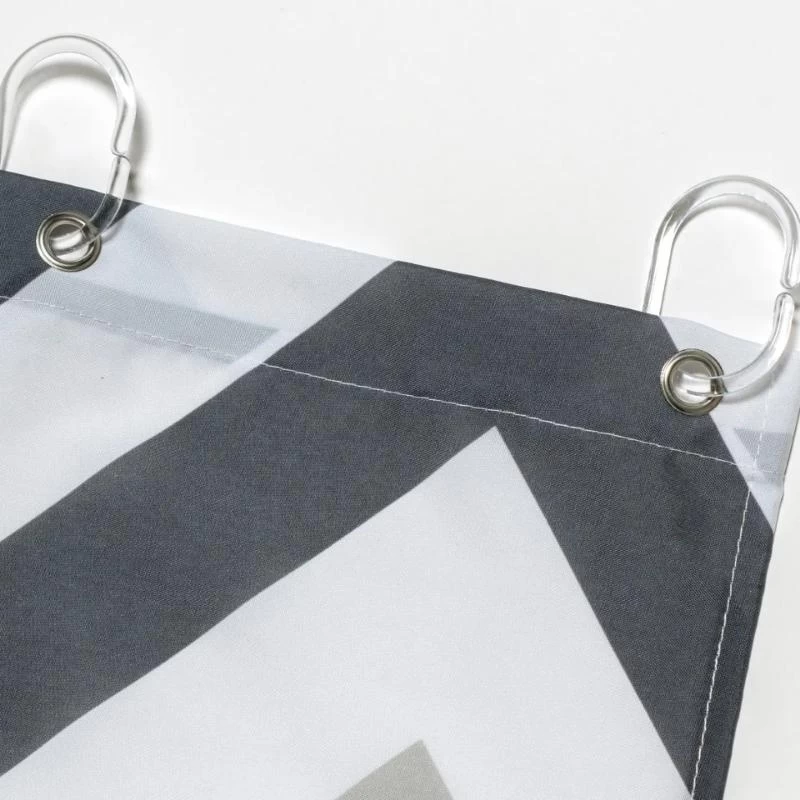 Add some zig-a-zig-ah back into your bathroom with this contemporary chevron curtain! Easy to fit, this curtain is ready to hang with corrosion resistant eyelets and finished in durable, water repellent fabrics. A weighted hem also prevents sticking, putting an end to the mid shower fight with the clingy curtain! An anti-microbial treatment and wipe clean finish makes this essential accessory easy to maintain. With a white, charcoal and grey chevron finish, this curtain is sure to spice up any bathroom.