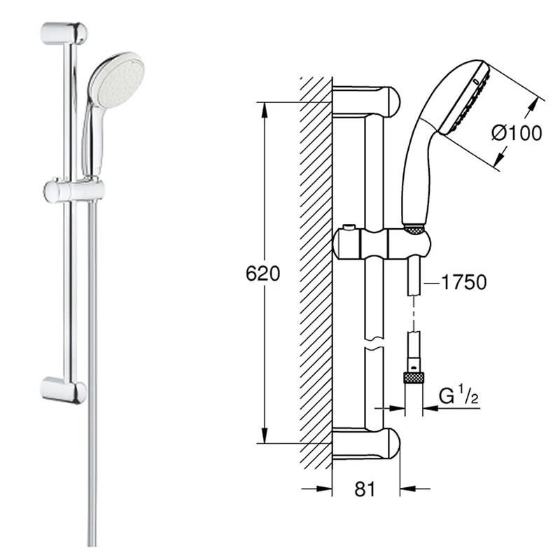 - Name Grohe new Tempesta 100 rail set 2 spray patterns – Chrome (27598001)