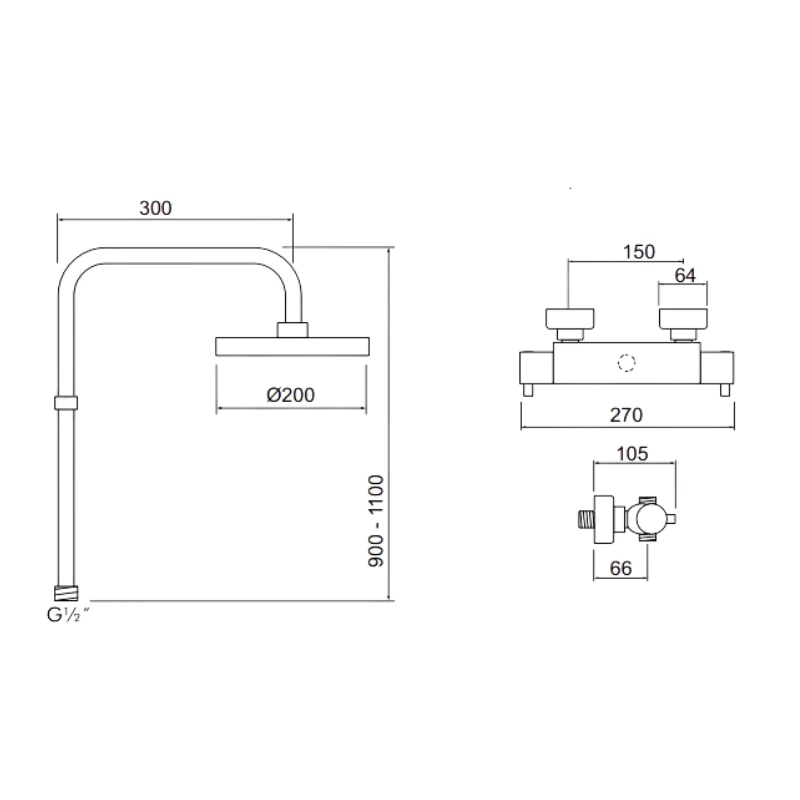 Bar Mixer Showers - Pipe Centers 150mm
