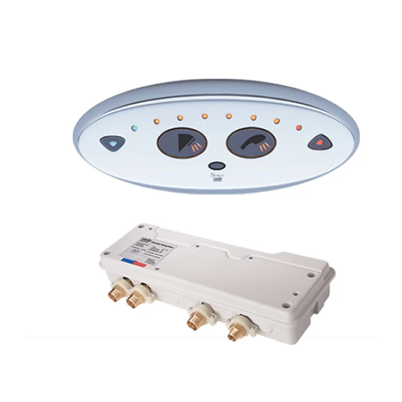Concealed digital mixing valve for dual shower, offering non-touch flow and temperature control, programmable maximum, minimum and default temperatures, duty flush and thermal disinfection with datalogging capabilities.